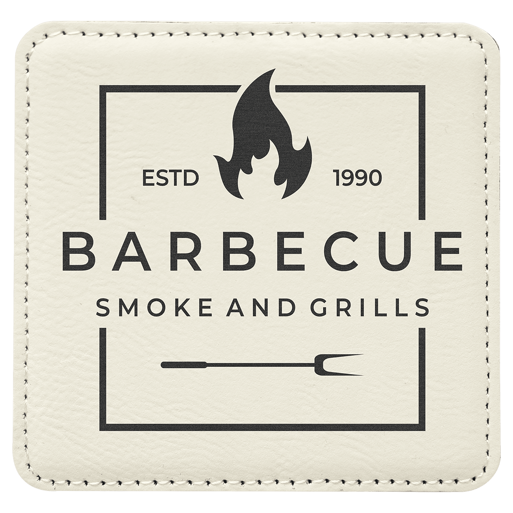 4" x 4" Square White Laserable Leatherette Coaster (Sold by Case of 6)