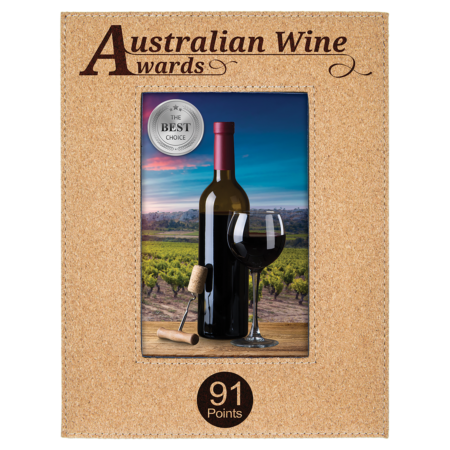 This elegant photo frame is crafted from soft, durable, eco-friendly cork is a truly unique way to showcase your favorite photos. The frame laser engraves to black for a stunning contrast, and the back is felted with both an easel and hangers fro horizontal or vertical wall or table display.