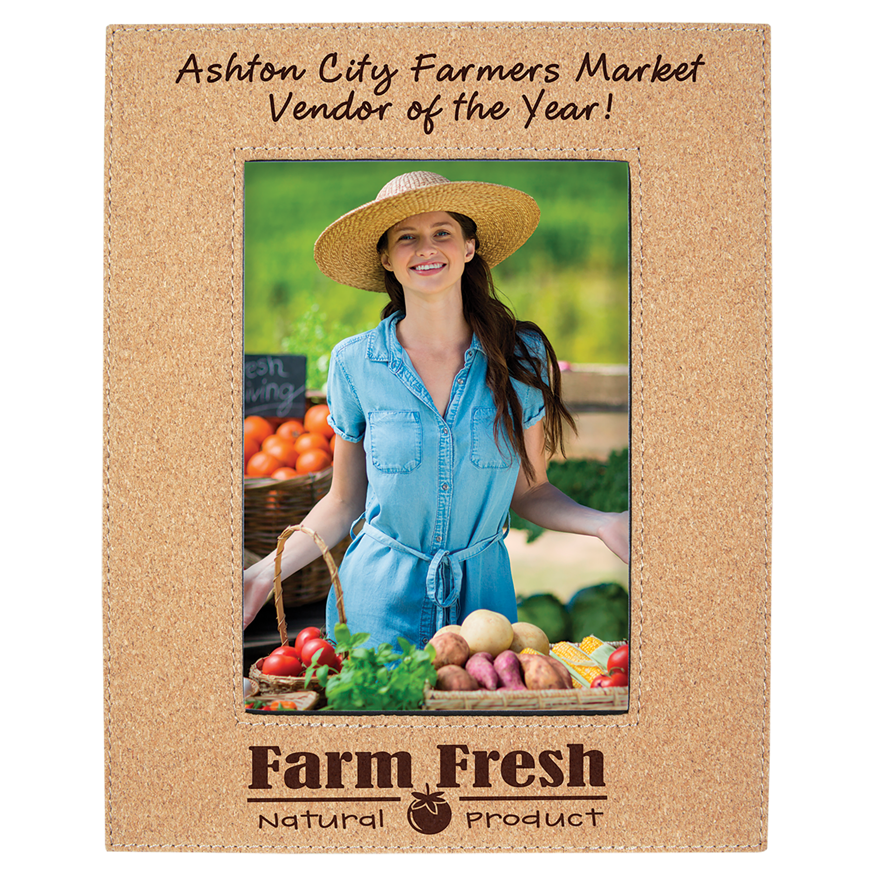 This elegant photo frame is crafted from soft, durable, eco-friendly cork is a truly unique way to showcase your favorite photos. The frame laser engraves to black for a stunning contrast, and the back is felted with both an easel and hangers fro horizontal or vertical wall or table display.