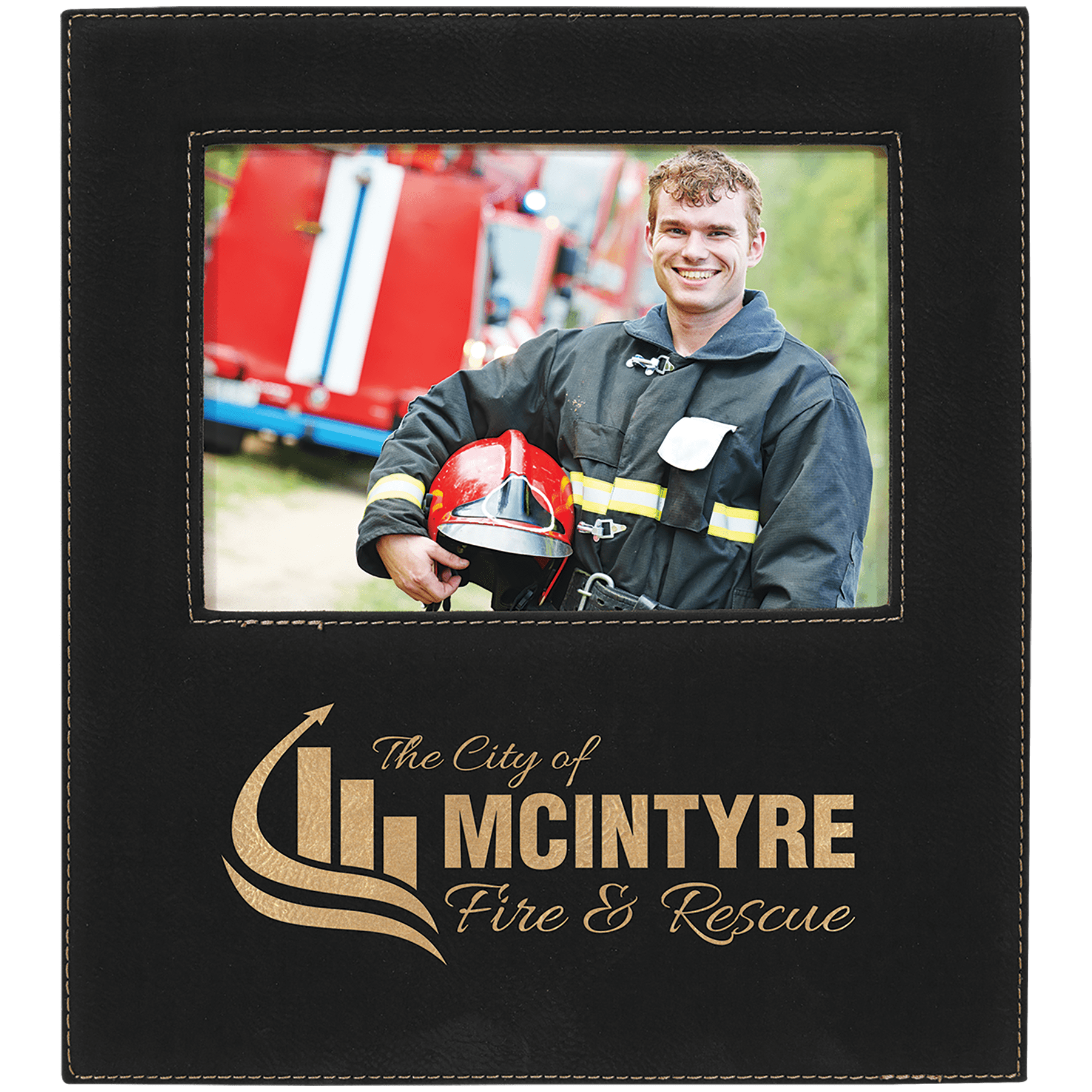 5" x 7" Black/Gold Leatherette Photo Frame with 4 1/4" x 8 7/8" Engraving Area (Sold by Case of 12)