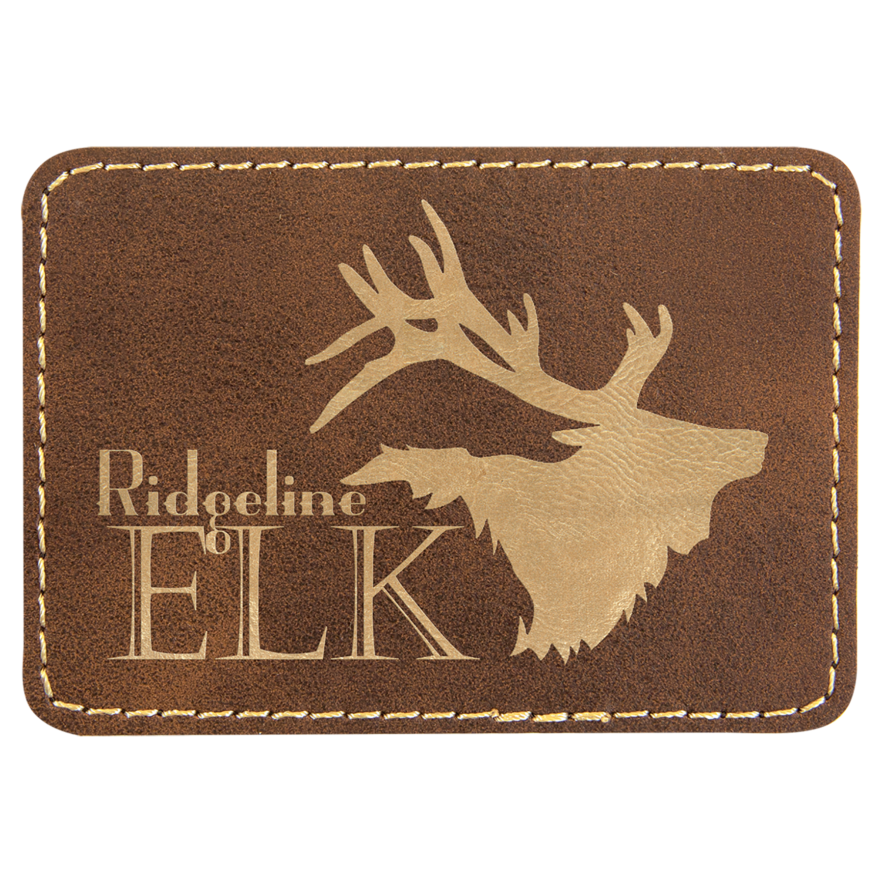3 1/2" x 2 1/2" Rectangle Rustic/Gold Laserable Leatherette Patch with Adhesive (Sold by Case of 25)