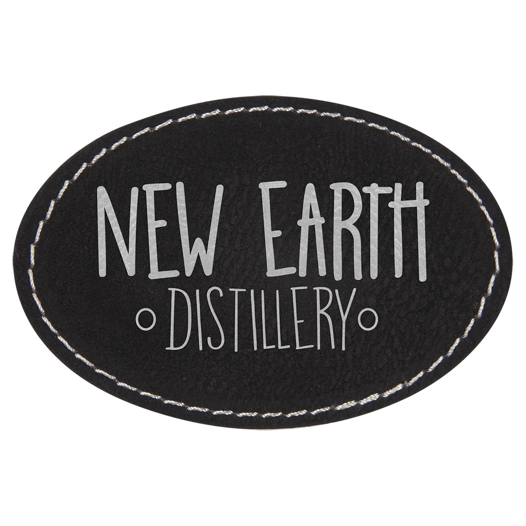 3" x 2" Oval Black/SiLver Laserable Leatherette Patch with Kota Pro Adhesive (Sold by Case of 25)
