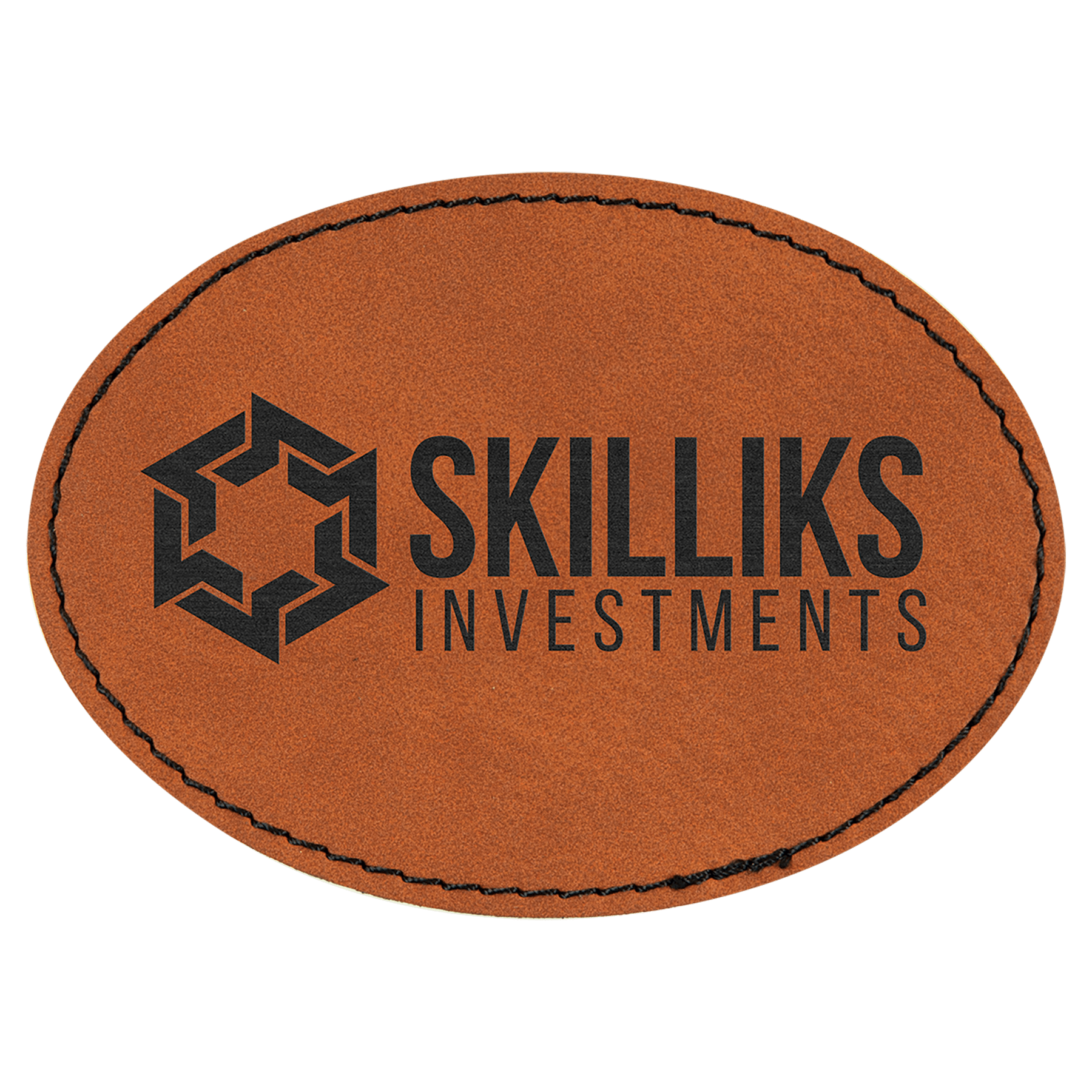 3 1/2" x 2 1/2" Oval Rawhide Laserable Leatherette Patch with Adhesive (Sold by Case of 25)