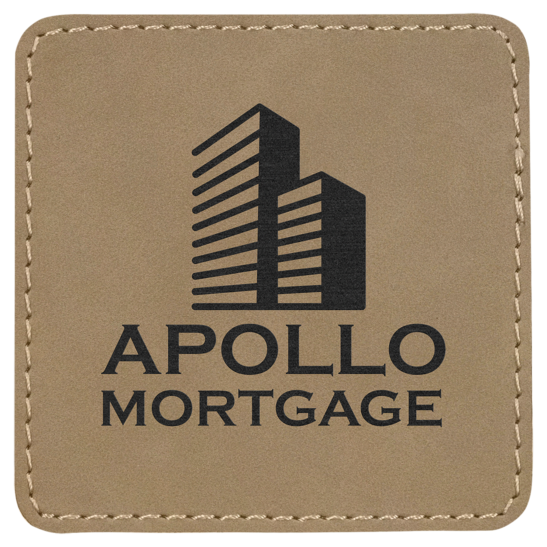 3" x 3" Square Light Brown Laserable Leatherette Patch with Adhesive (Sold by Case of 25)