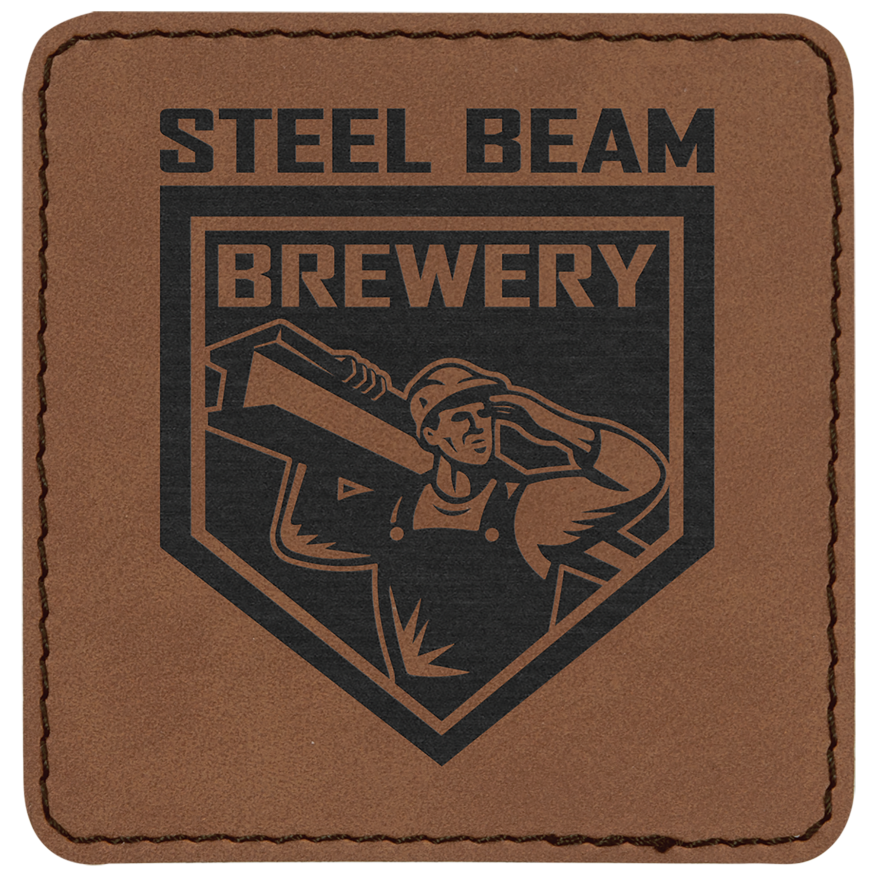 3" x 3" Square Dark Brown Laserable Leatherette Patch with Adhesive (Sold by Case of 25)