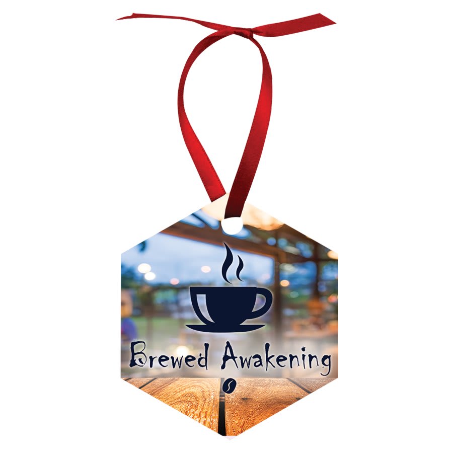 2.6" x 3" Gloss White Unisub Aluminum Hexagon Ornament, 2-sided (Sold by Case of 50)